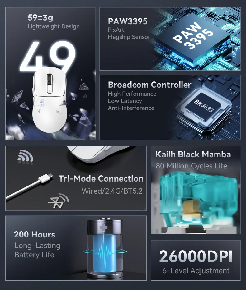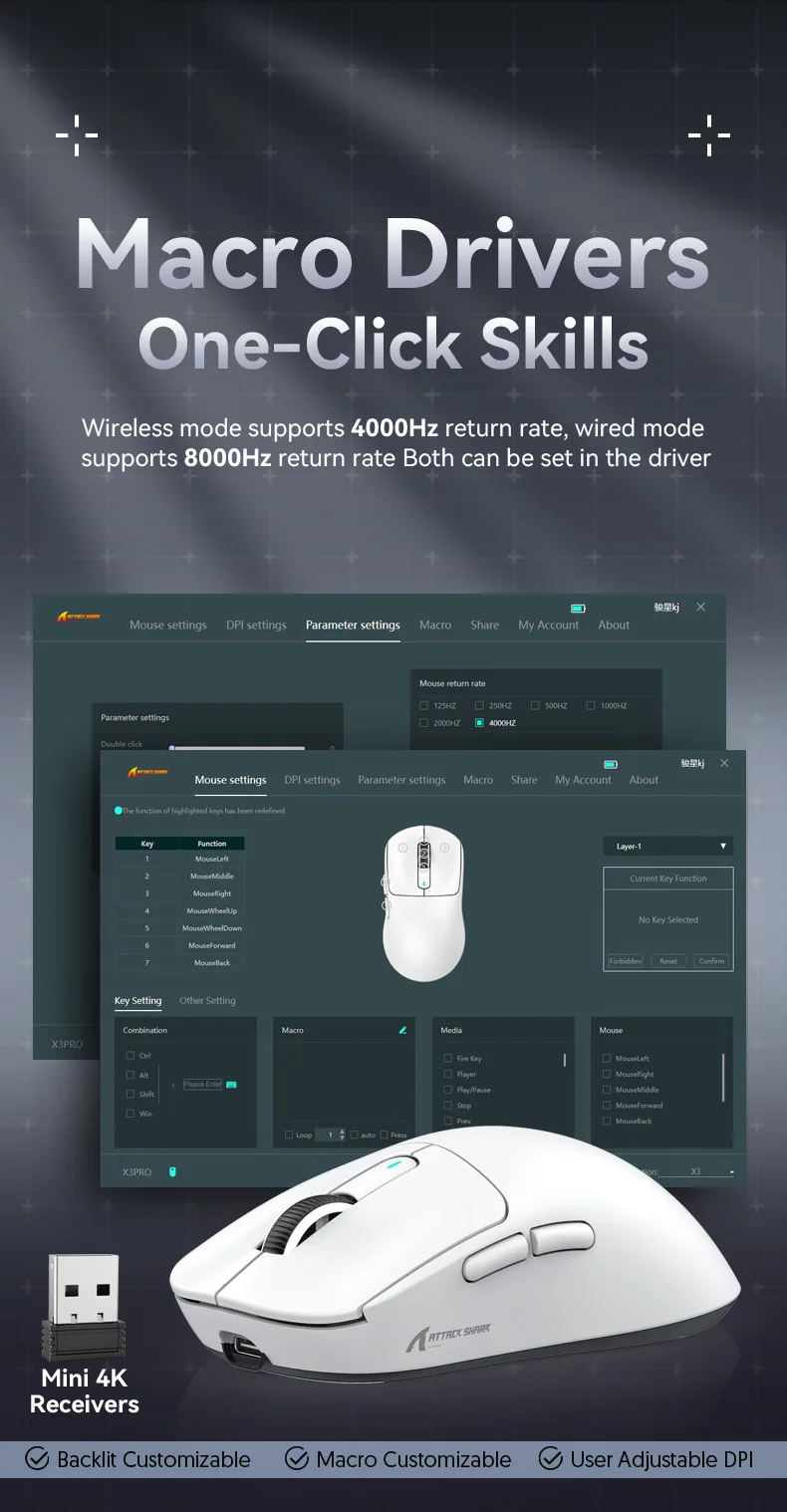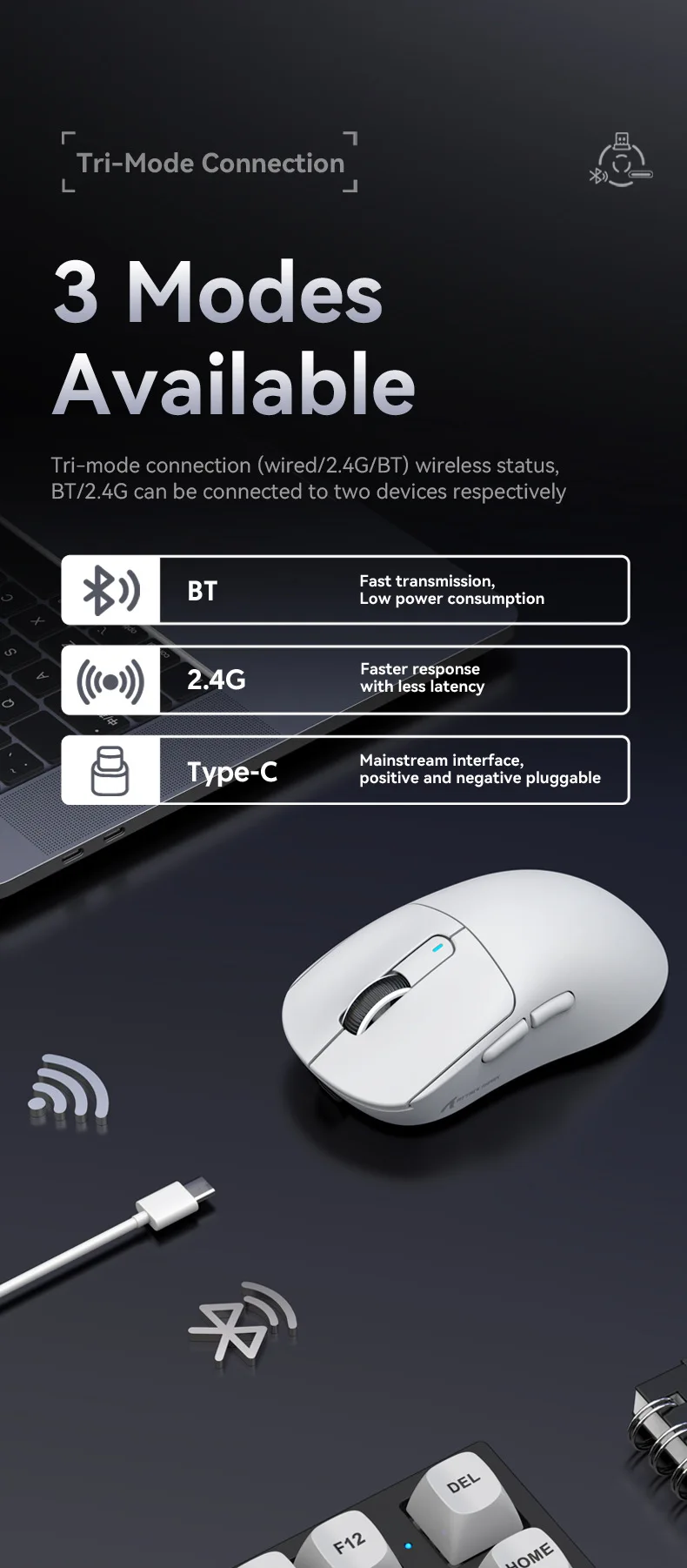 Product Features: Attack Shark X3PRO Mouse Tri-Mode Wireless PAW3395 4K Sensor Lightweight Gaming Mouse Specifications: Model Attack Shark X3Pro Box size