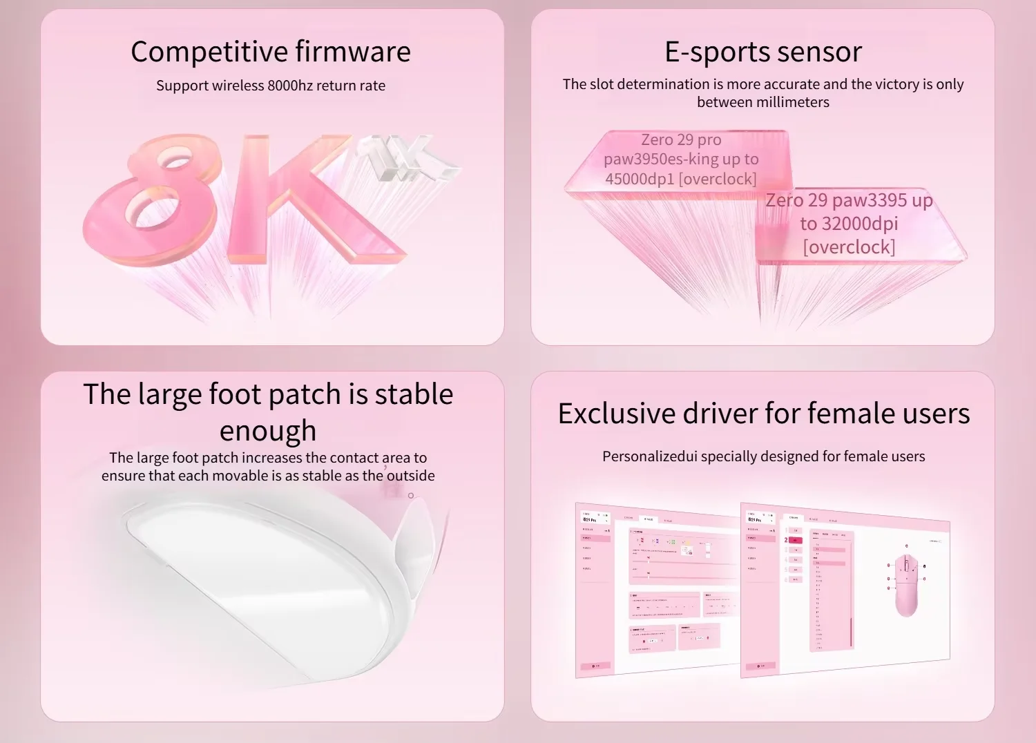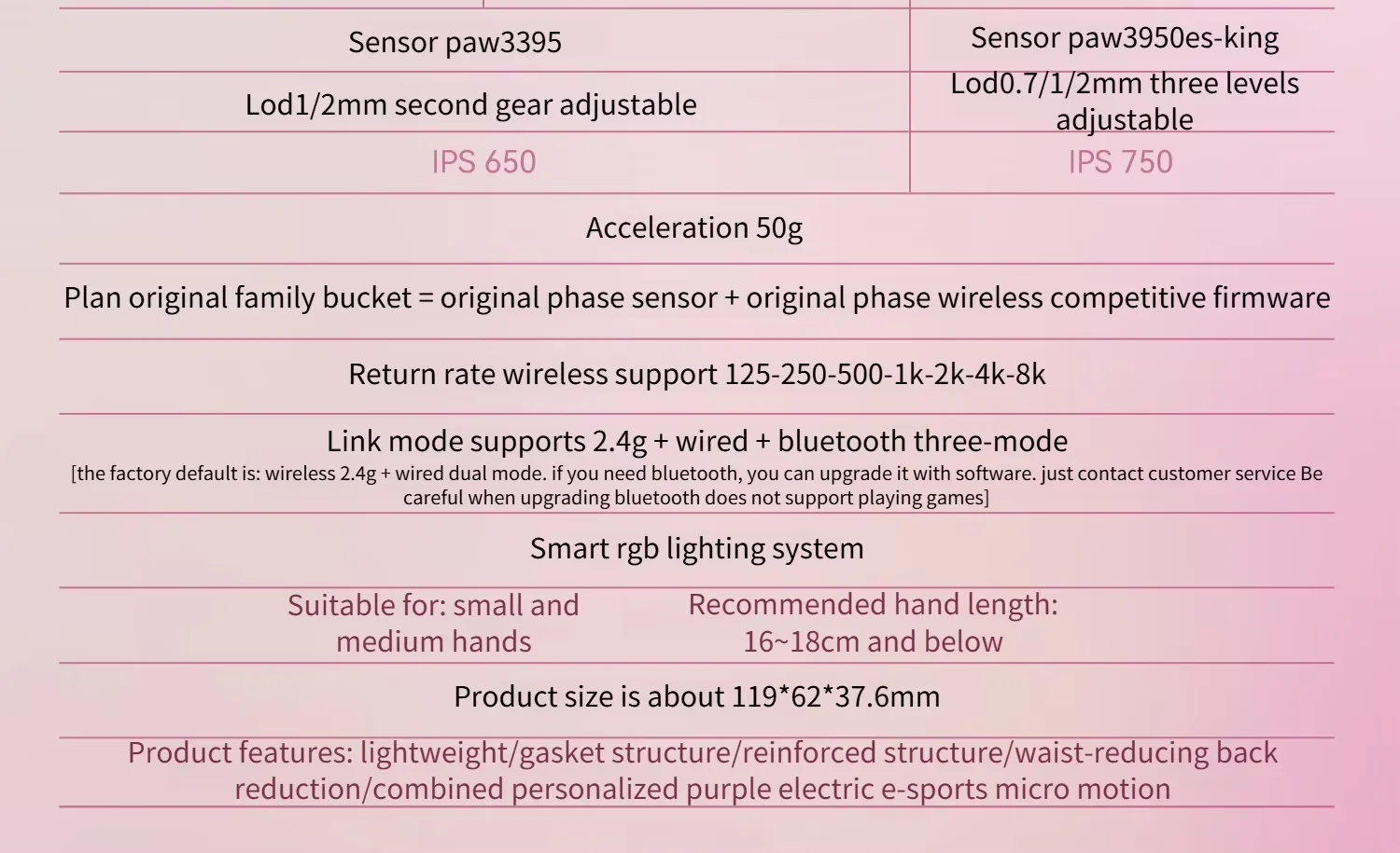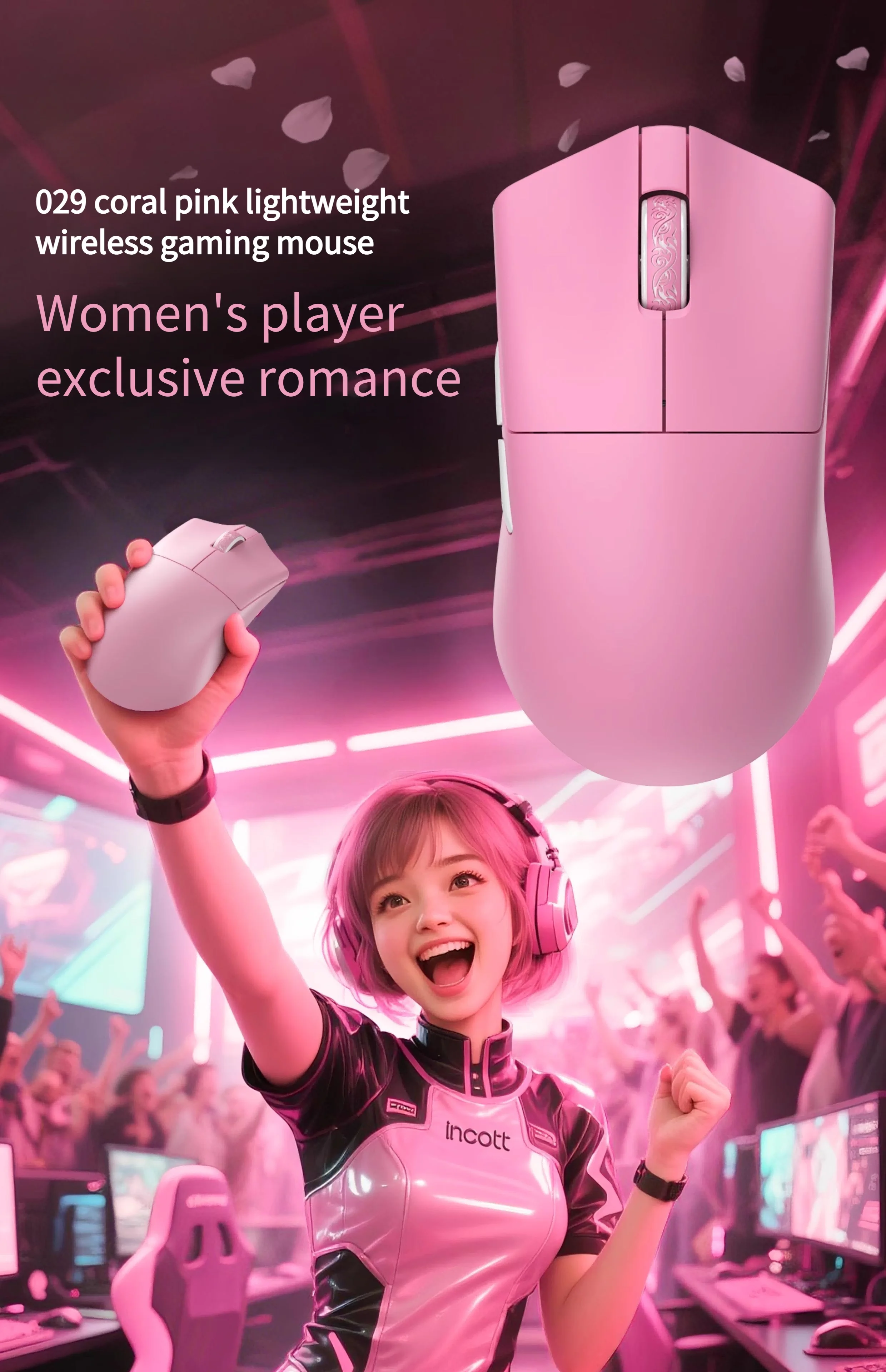 Product Features: Incott 029 Pro Mouse Lightweight 34G RGB Tri-mode PAW3950 45000DPI 750IPS Low Latency 8Khz Gaming Mouse for Girl/women Specifications: Model Incott 029 Pro Mouse Lightweight Box size