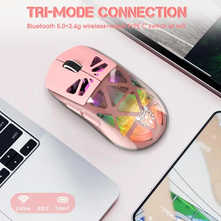 ONIKUMA CW930 Lightweight Gaming Mouse with Tri-Mode Connectivity Programmable Buttons and Customizable RGB 500Mah Battery
