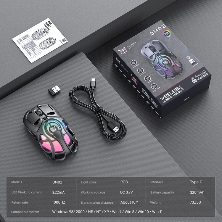 Product Features: ONIKUMA DM02 2.4G Tri-Mode Ultralight Wireless Gaming Mouse 12800DPI RGB Ergonomic Mouse Specifications: Model ONIKUMA DM02 2.4G Tri-Mode Ultralight Wireless Gaming Mouse Box size