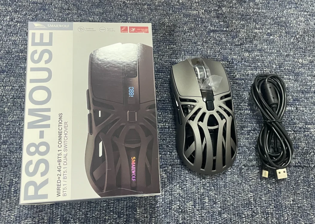 Product Features: SMAILWOLF RS8 10000dpi Hollow Screen Battery Display Tri Mode Long Endurance E-sports Wireless Gaming Mouse Specifications: Model: SMAILWOLF RS8 Return rate: