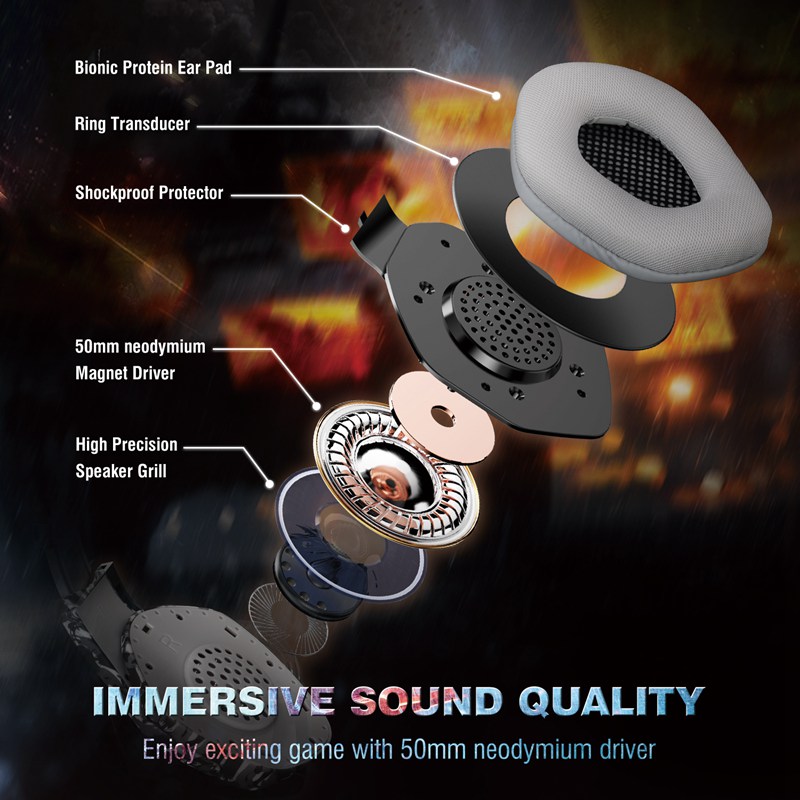 The 40mm magnetic neodymium drivers which have shocking bass and allow hearing the position and footsteps accurately can bring you a vivid sound field, capable of various games.